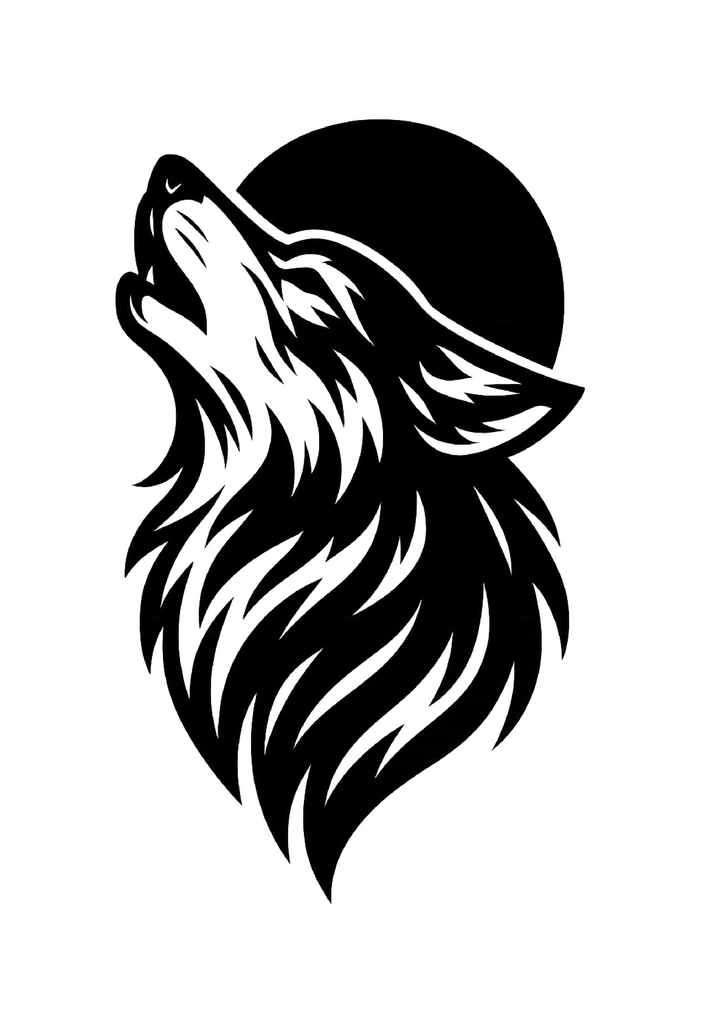 Diese Vorlage zeigt einen stylisierten Wolf mit Mond und bietet starke Symbolik.