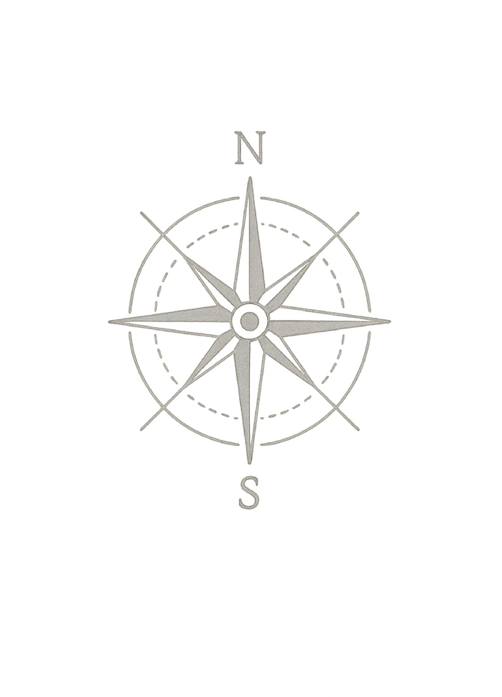 Die Tattoovorlage zeigt einen stilisierten Kompass, der mit feinen Linien und einer klaren Struktur gestaltet ist. Diese Vorlage eignet sich ideal für alle, die sich mit Orientierung und Reise identifizieren möchten.
