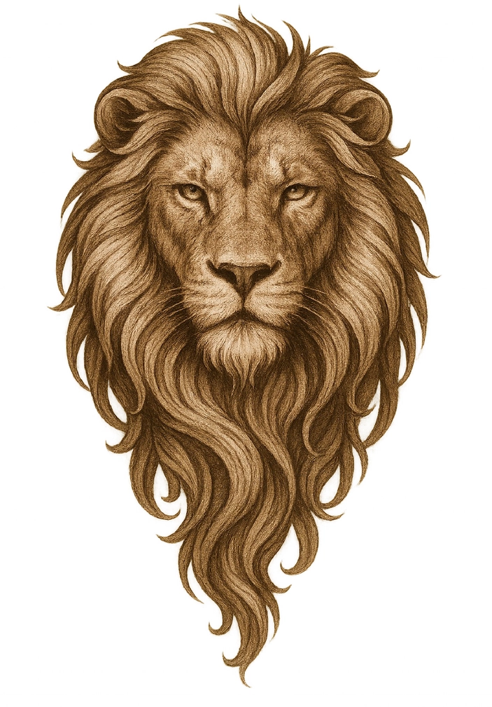 Majestätischer Löwenkopf als Tattoovorlage für Männer, ideal für den Rücken.