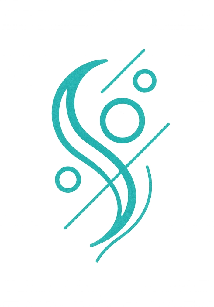 Diese Tattoovorlage zeigt eine moderne, abstrakte Komposition aus geschwungenen Linien und Kreisen. Das Design vermittelt ein Gefühl von Bewegung und Harmonie, ideal für eine Platzierung am Oberarm. Die türkisfarbene Farbgebung sorgt für einen frischen und ansprechenden Look.