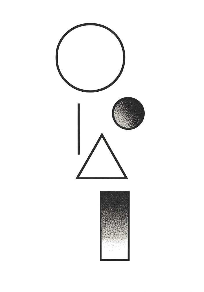 Diese Tattoovorlage zeigt eine interessante Anordnung von geometrischen Formen, darunter Kreise, Dreiecke und schattierte Rechtecke. Die minimalistischen Designs sind ideal für Schwarz-Weiß-Tattoos und bieten vielseitige Gestaltungsmöglichkeiten für Tattoo-Enthusiasten.